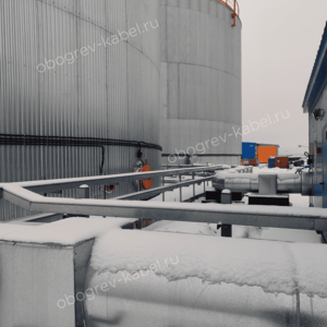 Саморегулирующийся нагревательный кабель собственного бренда SAMREG 24-2CR предназначался для обогрева трубопроводов диаметром 500 мм от резервуаров до насосной станции, а также для обогрева патрубков резервуаров.