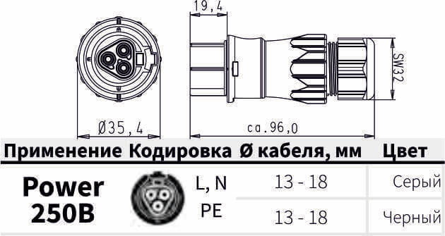 Вилка, поставляется с кабель-вводом: