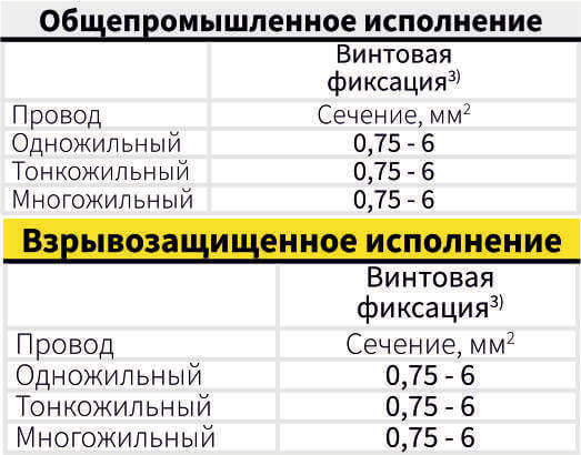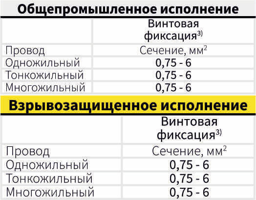 Для фиксации токоведущей жилы кабеля, в зависимости от задач, доступны три типа зажимов: винтовой, пружинный или обжимной. Конструкция позволяет подсоединять как одножильные, так и многожильные проводники. Особенностью вставок с пружинным зажимом является функция подключения двух проводников на один контакт. Для предотвращения распространенных монтажных ошибок рядом с точками подключения нанесена стойкая маркировка полюсов.