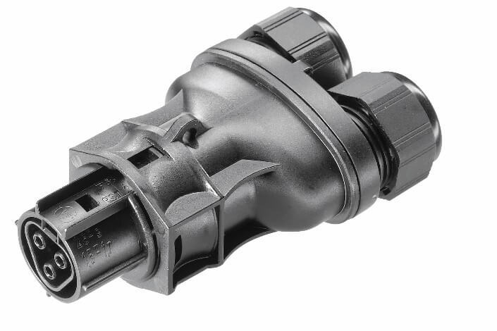 Сплиттер является по сути разъемом с возможностью обслуживания двух кабелей. Позволяет организовывать цепочечные схемы подключения и ответвительные узлы формата Y. В составе аксессуаров для сплиттера есть монтажное основание, которое позволяет быстро и надежно закрепить его на монтажной поверхности. Соединение сплиттер-сплиттер предоставляет дополнительные возможности по реализации разветвительных узлов.